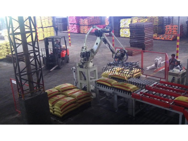 4、码垛机械手臂可以设置在狭窄的空间,场地使用效率高,应用非常灵活;